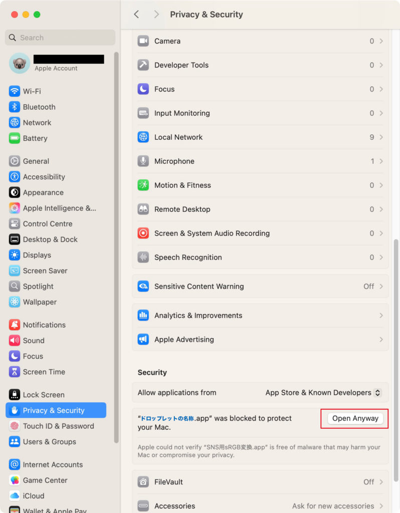 → Appleのセキュリティが「不明な開発元=危険かも?!」と判断